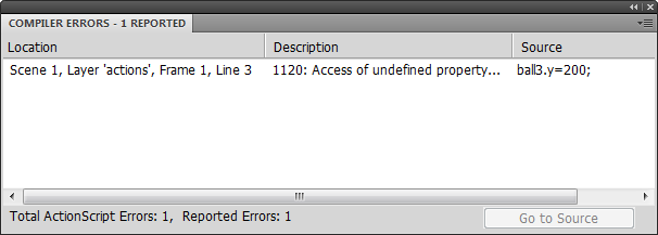 OK, so right now you might be thinking "duh, I knew that". But can you see where this might come in handy at some point in the future? Imagine you've worked for several days, creating hundreds of lines of code, and suddenly everything has come to a standstill. The Compiler Errors window is your friend!