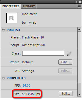 Finally, we're going to change that boundaryBottom value to equal the Stage height. You can go into the Properties window and lookup the value... mine is 350px: